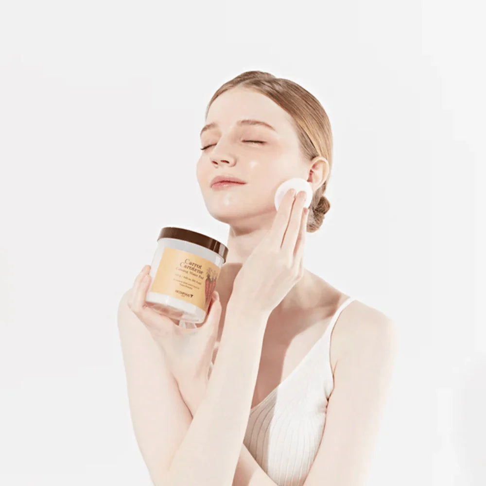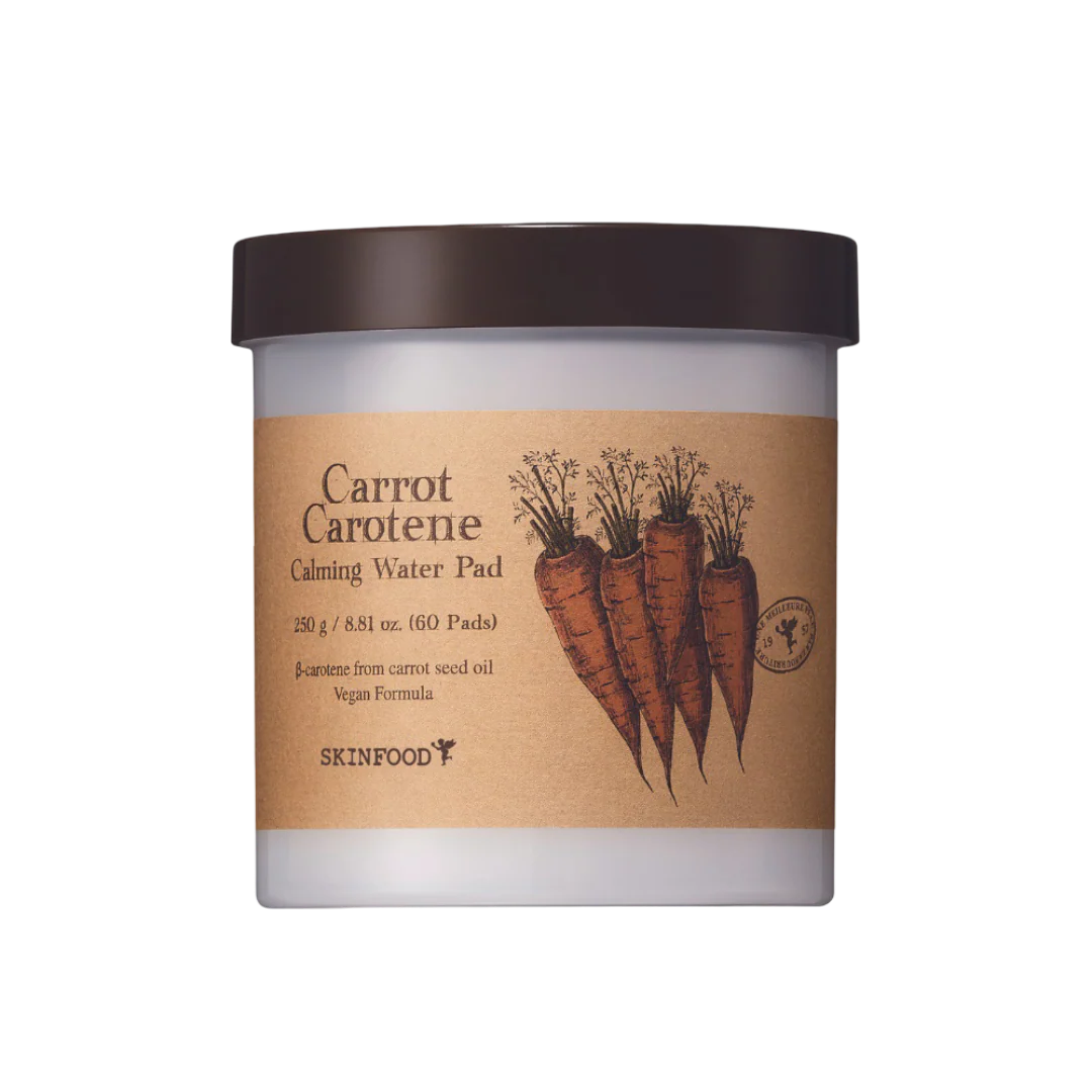 Descubre las Carrot Carotene Calming Water Pads de Skinfood, almohadillas veganas que hidratan, calman y revitalizan la piel sensible o enrojecida al instante. Infundidas con extracto de raíz de zanahoria y aceite de semilla ricos en betacaroteno y antioxidantes, protegen del estrés oxidativo mientras restauran la barrera cutánea. Su algodón tipo gofre ultra suave desliza delicadamente sobre la piel, proporcionando confort y alivio sin irritación, mientras la glicerina, ácido hialurónico, beta-glucano y alantoína mantienen la piel hidratada, tersa y equilibrada. Perfectas para todo tipo de piel, estas almohadillas transforman tu rutina en un momento de cuidado intensivo y bienestar, dejando un cutis fresco, saludable y radiante desde el primer uso.