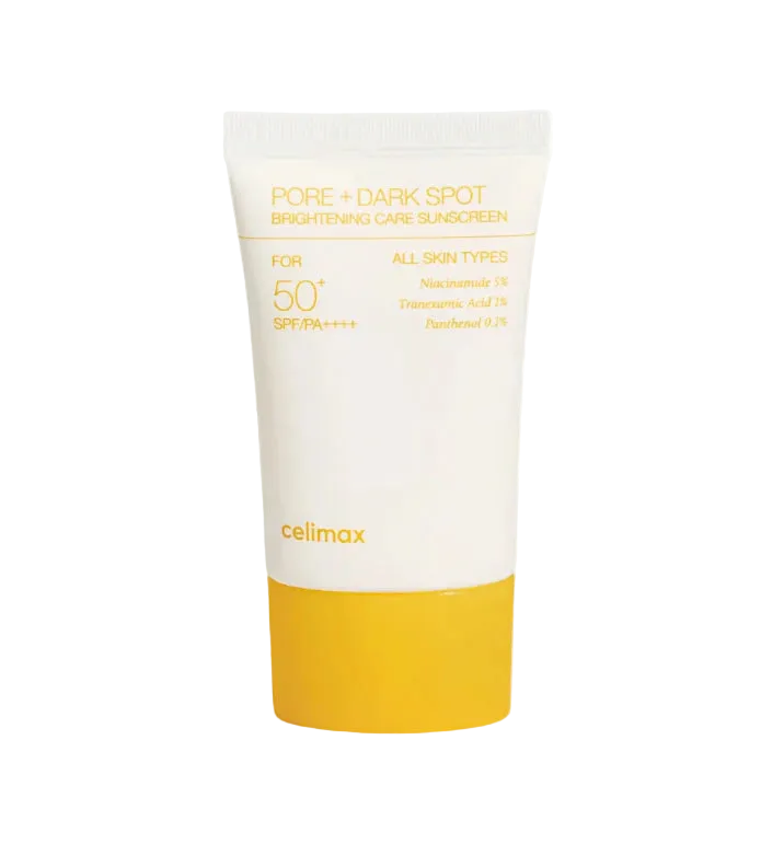 El CELIMAX Pore + Dark Spot Brightening Care Sunscreen SPF/PA++++ es un protector solar químico de amplio espectro (SPF50+ PA++++) que no solo protege la piel de los rayos UVA y UVB, sino que también combate las manchas oscuras y unifica el tono gracias a su fórmula con Ácido Tranexámico, Niacinamida y Melazero V2. Con un 79,3% de esencia hidratante, Ceramida NP y Ácido Hialurónico Hidrolizado, proporciona hidratación profunda, suavidad y firmeza, mientras su textura ligera se absorbe rápidamente sin dejar residuos ni sensación pegajosa. Ideal para todo tipo de piel, este protector solar multifuncional cuida, ilumina y mantiene la piel radiante, refinada y protegida cada día.